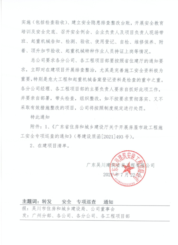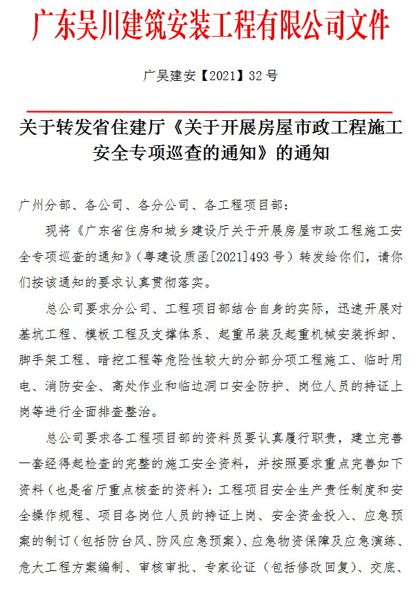 (六)此次專(zhuān)項(xiàng)安全巡查工作時(shí)間長(zhǎng)、涉及面廣,請(qǐng)各地住建部門(mén)安排1名人員作為巡查工作聯(lián)絡(luò)員,于6月30日前填寫(xiě)在建項(xiàng)目清單(附件1)、聯(lián)絡(luò)員名單回執(zhí)(附件2)報(bào)送我廳工程質(zhì)量安全監(jiān)管處。