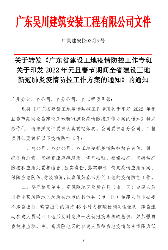 關于轉發(fā)《關于印發(fā)2022年元旦春節(jié)期間全省建設工地新冠肺炎疫情防控工作方案的通知》的通知